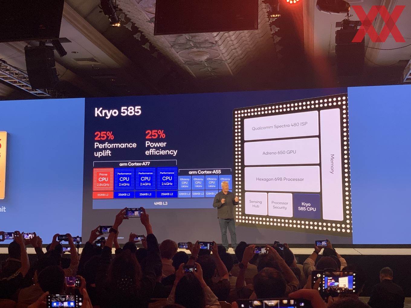 Am wenigsten scheint Qualcomm am ARM A77-Design geändert zu haben, das für die CPU zugrunde liegt. Der A77 sorgt an sich schon für einen 25%-igen Performanceschub und 25 % weniger Stromverbrauch. Der 8-Core-CPU setzt auf einen Prime Core, drei Performance-Cores und vier A55-Kerne, Qualcomm bohrt aber den Cache des Prozessors auf 4 MB L3-Cache auf. In einem Roundtable wurde zudem bestätigt, dass dies die einzige wesentliche Veränderung zum ARM-Design sei.