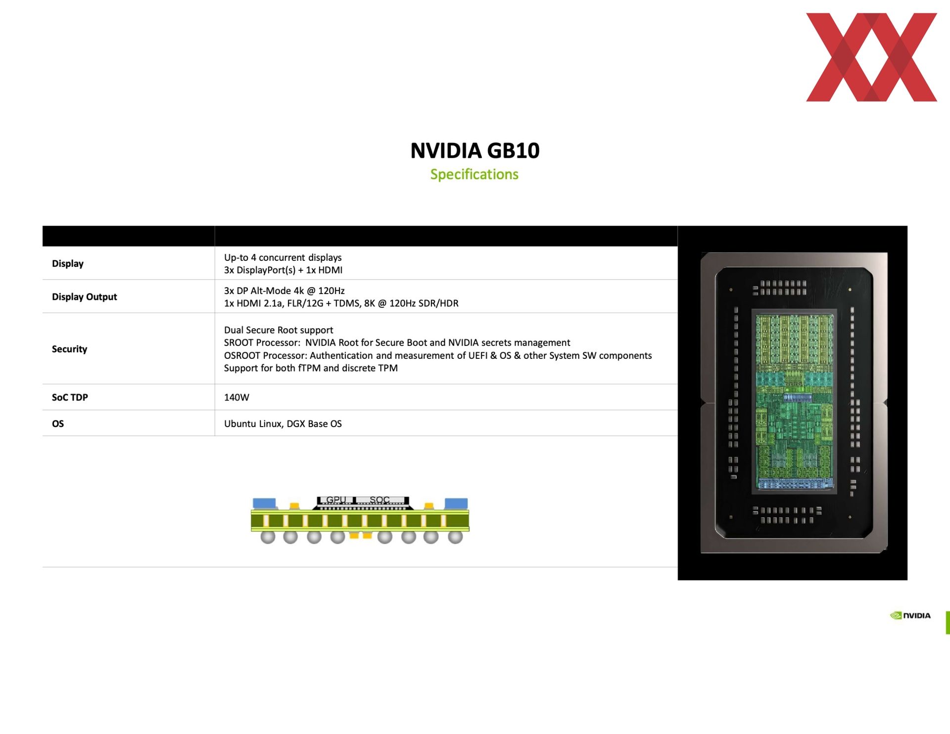 NVIDIA bezeichnet die beiden Komponenten als S-Dielet oder kurz S-Die (CPU, Memory Subsystem, etc.) und G-Dielet, kurz G-Die (Blackwell-GPU), die in einem Advanced 2.5D Packaging zusammengebracht werden. Beide Chips sollen bei TSMC in 3 nm gefertigt werden.