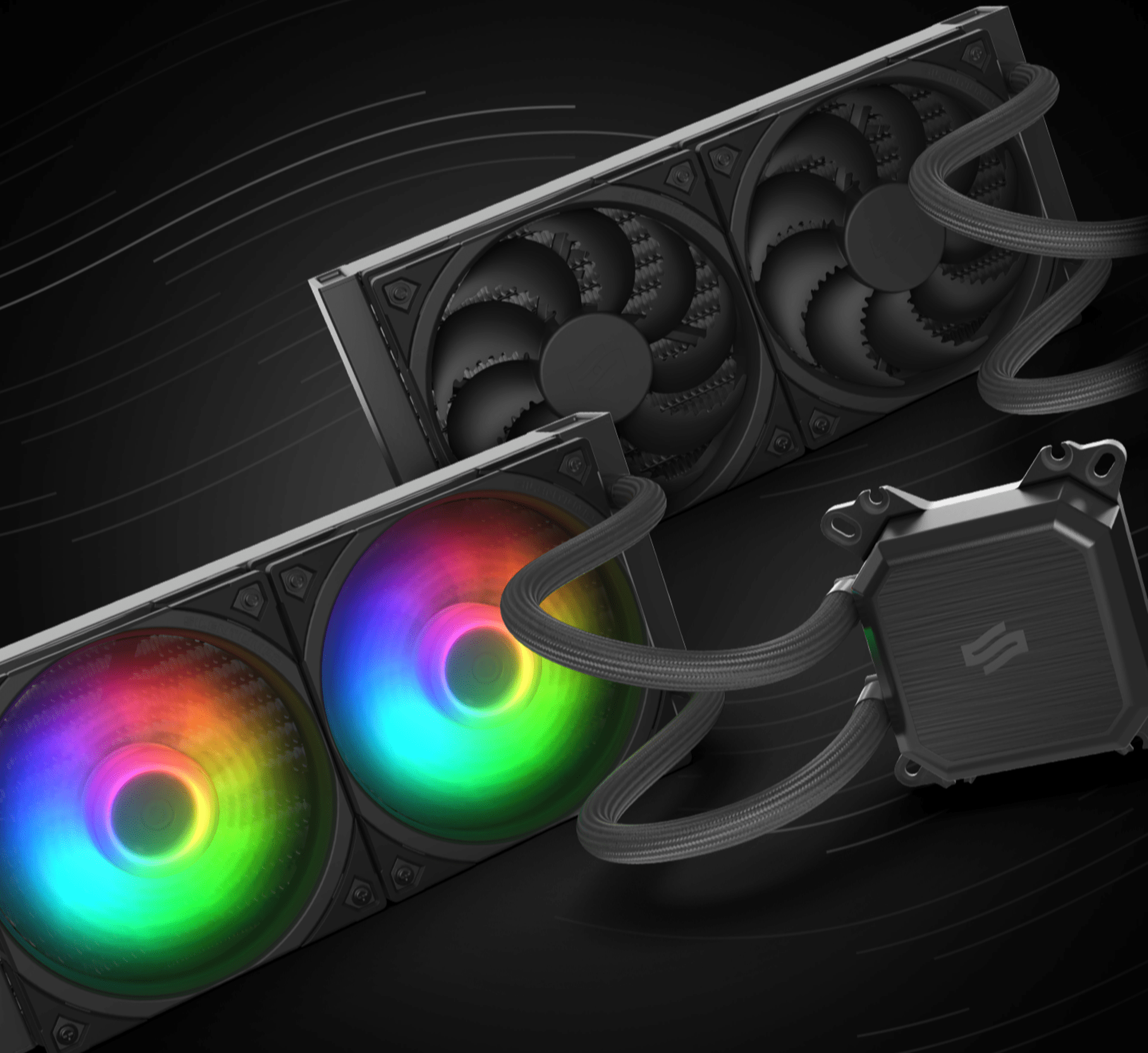 Die auf den Radiator übertragene thermische Energie wird von zwei Fluctus 120 PWM-Lüftern abgeführt, die aufgrund der zum Patent angemeldeten psychoakustischen Optimierungen von Synergy Cooling eine hervorragende Leistung bei sehr niedrigem Geräuschpegel bieten sollen. Die adressierbare Hintergrundbeleuchtung ermöglicht es dem Benutzer bei den Lüftern jede der verbauten LEDs farblich individuell anzupassen.
