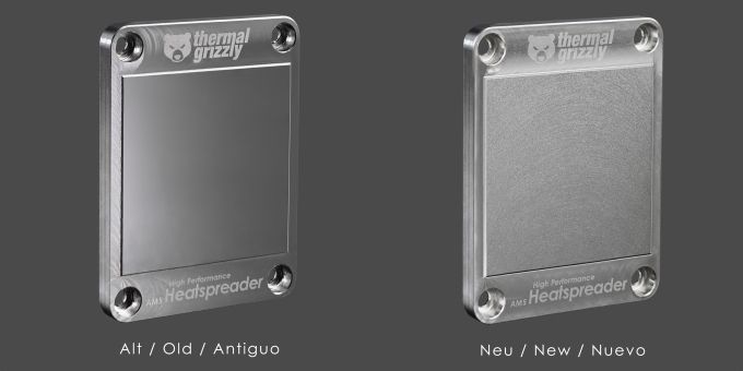 Das Ergebnis sind nicht nur bessere Temperaturwerte durch einen verbesserten Wärmeübergang, sondern auch die Optik unterscheidet sich durch den veränderten Vernickelungsprozess. Die Oberfläche ist nun deutlich matter und zeigt die darunterliegenden Spuren der Zerspanung. Die potentiellen Käufer der Heatspreader und Wasserkühler haben das bisherige Oberflächendesign womöglich bevorzugt, laut Thermal Grizzly stellt man die Funktion aber über das Design.